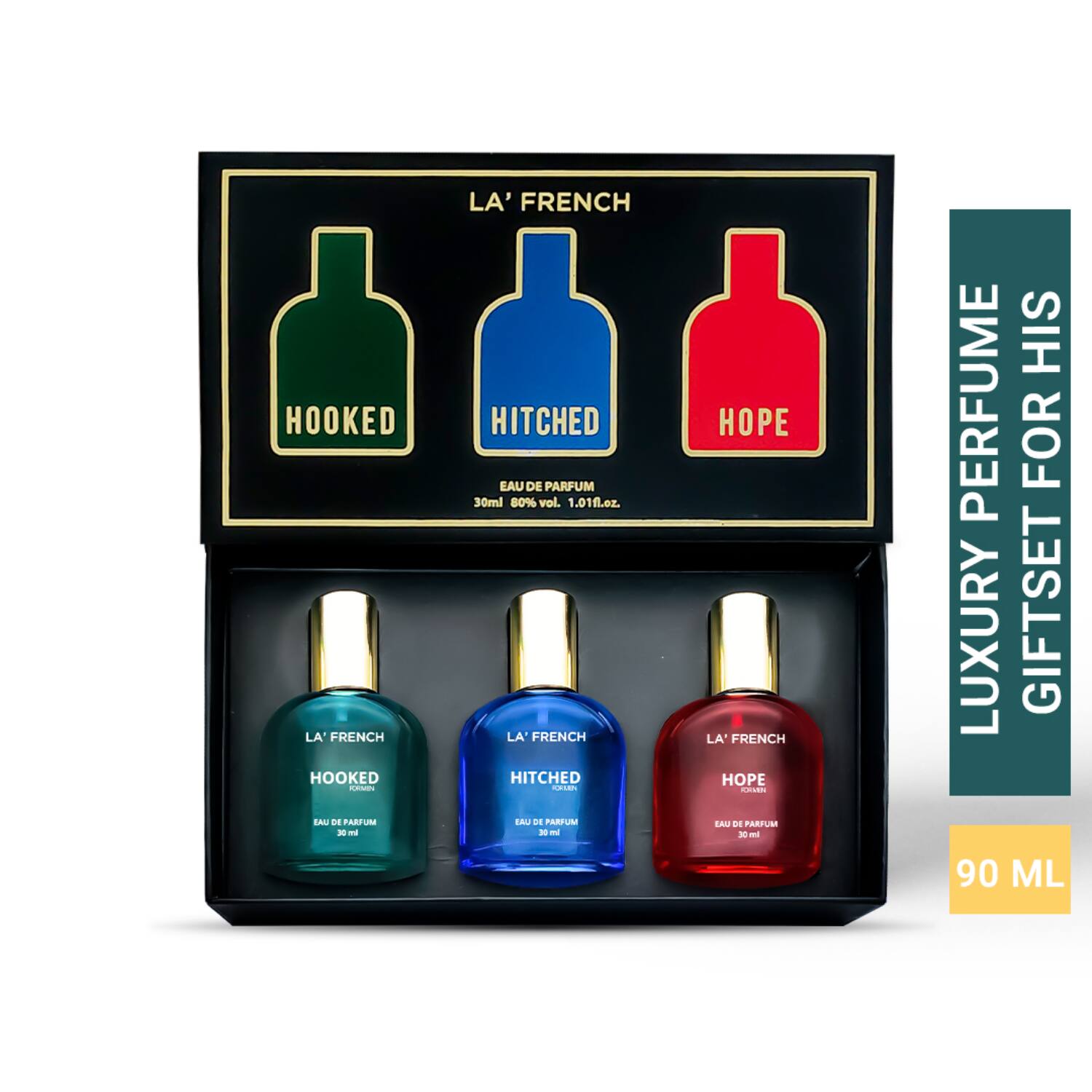 LA' French Hooked, Hitched & Hope Perfume Gift Set For Men (3Pcs)
