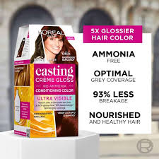 Get a salon-style hair colouring experience in the comfort of your home with L'Oreal's Casting Creme Gloss Raspberry Hair Colour with no ammonia formula. It covers greys and gives a long-lasting, natural-looking colour with visible shimmering tones and glossy shine. The non-drip creme formula allows for easy application and develops desirable results in just 30 minutes, which lasts up to 28 washes.