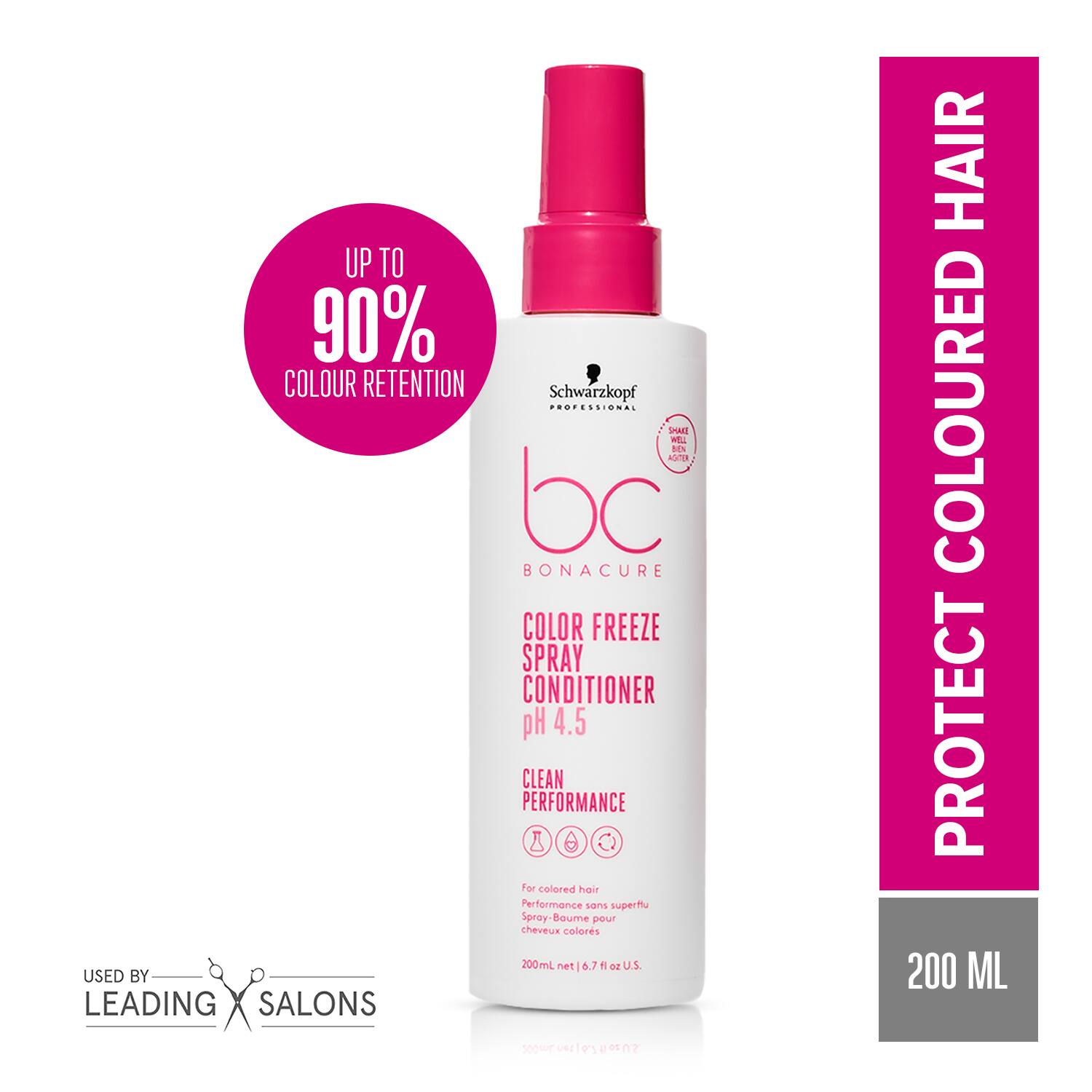 Manage your colored hair with the Schwarzkopf Professional Bonacure Color Freeze Spray Conditioner pH 4.5 (200ml). Powered by pH 4.5 balancer technology, this balancing conditioner maintains the optimal pH level for vibrant, long-lasting color. As a color protect conditioner, it revives dull, colored hair, maximizing color retention. This Schwarzkopf Professional conditioner smoothens and detangles, leaving your hair brilliantly shiny.